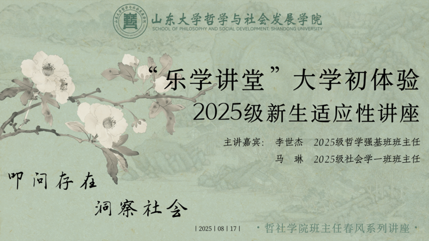 为帮助2025级新生尽快熟悉专业特点、掌握科学学习方法,beat365英国官方网站哲学社会发展学院精心策划并于8月17日晚举办“叩问存在,洞察社会”班主任春风系列讲座暨“乐学大讲堂”大学初体验2025级新生适应性讲座。本次讲座特邀2025级哲学强基班班主任李世杰、2025级社会学一班班主任马琳担任主讲嘉宾,吸引2025级全体新生齐聚线上会议室,反响热烈。
