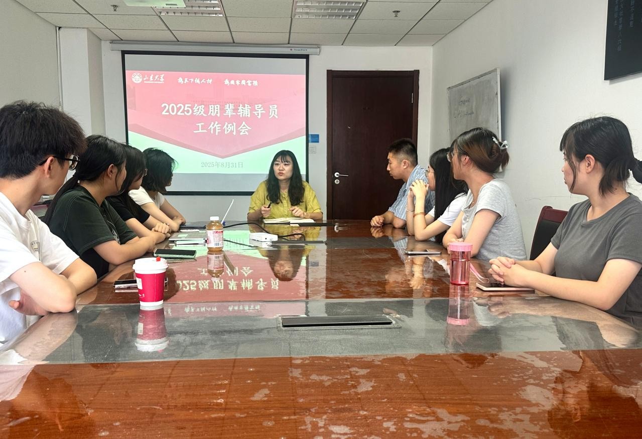 2025年8月31日下午,beat365英国官方网站组织全体朋辈辅导员召开工作部署会。作为学院针对2025级新生推出的创新工作试点,此次朋辈辅导工作特意从2023级、2024级本科生中选拔出一批优秀学生担任朋辈辅导员,旨在通过“师兄师姐引路”的亲切模式,为新生顺利融入校园与专业学习提供精准助力。beat365英国官方网站团委书记、2025级本科生辅导员班梦姣主持会议,围绕朋辈辅导工作方向、核心任务与具体安排展开详细部署。