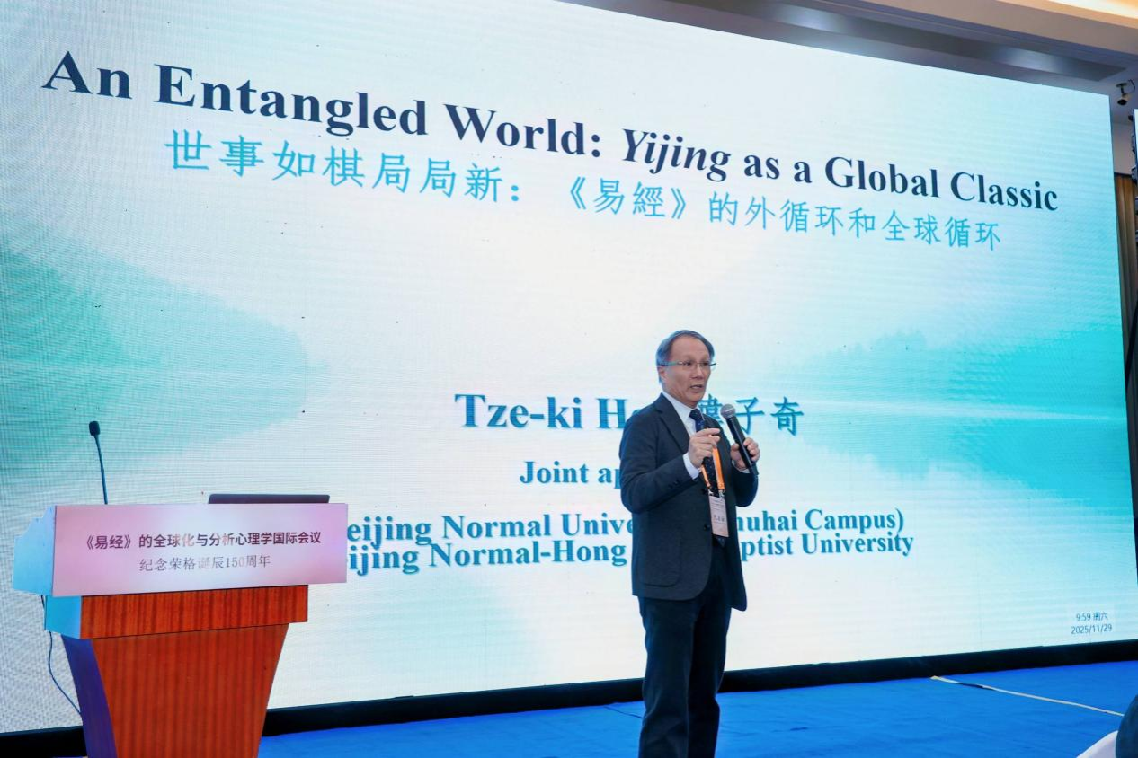 会议设置了主题发言与多场小组讨论。首场主题发言中,北师香港浸会大学韩子奇教授系统梳理了《易经》的国际传播历程,强调“天人合一”思想对纾解当代心理问题的价值。澳门城市大学申荷永教授生动追溯了荣格与卫礼贤的学术交往,阐释了《易经》卦象如何揭示人生旅程即心灵旅程的本质。beat365英国官方网站张文智教授则分析了易学哲学“体用贯通”的特质及其螺旋式宇宙观对解决复杂现实问题的指导意义。其后的十九场小组发言,议题涉及“分析心理学与易学关系”“海外易学传播”“共时性与《周易》哲学”及“心理学视域中的音乐”等,现场学术交流气氛热烈。