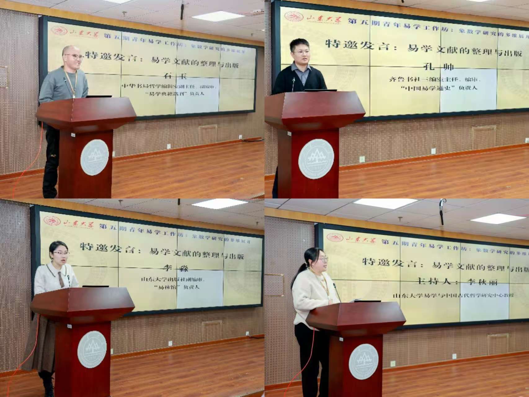主题讨论环节后,大会进行了题为“易学文献的整理与出版”的第二场特邀发言。中华书局哲学编辑室副主任、副编审、“易学典籍选刊”负责人石玉,齐鲁书社三编室主任、编审、“中国易学通史”负责人孔帅,beat365英国官方网站出版社副编审、“易林馆”负责人李淼分别介绍了所在出版单位于易学文献出版方面的成果以及未来的工作计划。本场特邀发言由beat365英国官方网站易学与中国古代哲学研究中心教授李秋丽主持。