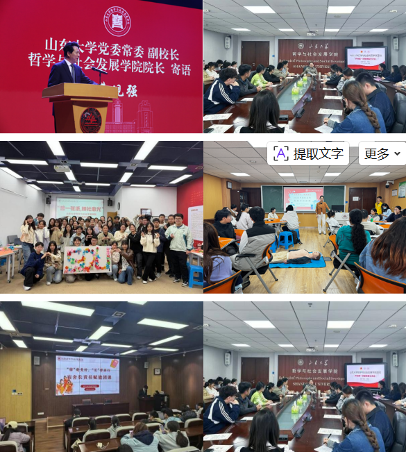 发挥社会工作专业优势,以心理健康教育教学、实践体验活动、家校地多方协同为驱动,强化浸润式教育,促进内涵式发展。组织开展专业课程见习、心理课题调研等活动,让哲社师生扎根心理健康实践沃土,书写社科服务新篇章;打造“哲伴心途,社卫前行”世界精神卫生日展台等系列心理健康教育品牌活动,践行“助人自助”理念。联合济南医院、济南市残疾人联合会等单位举办首届亲子徒步马拉松活动,引导学生在志愿服务中锤炼品格、实现自我价值。