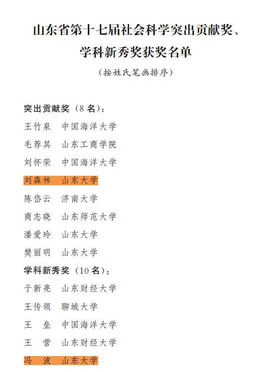 近日,山东省人民政府公布第三十七届社会科学优秀成果奖、第十七届社会科学突出贡献奖及学科新秀奖获奖名单,beat365英国官方网站在本次评选中表现突出,展现出学院在哲学社会科学领域的扎实积累与创新能力。
