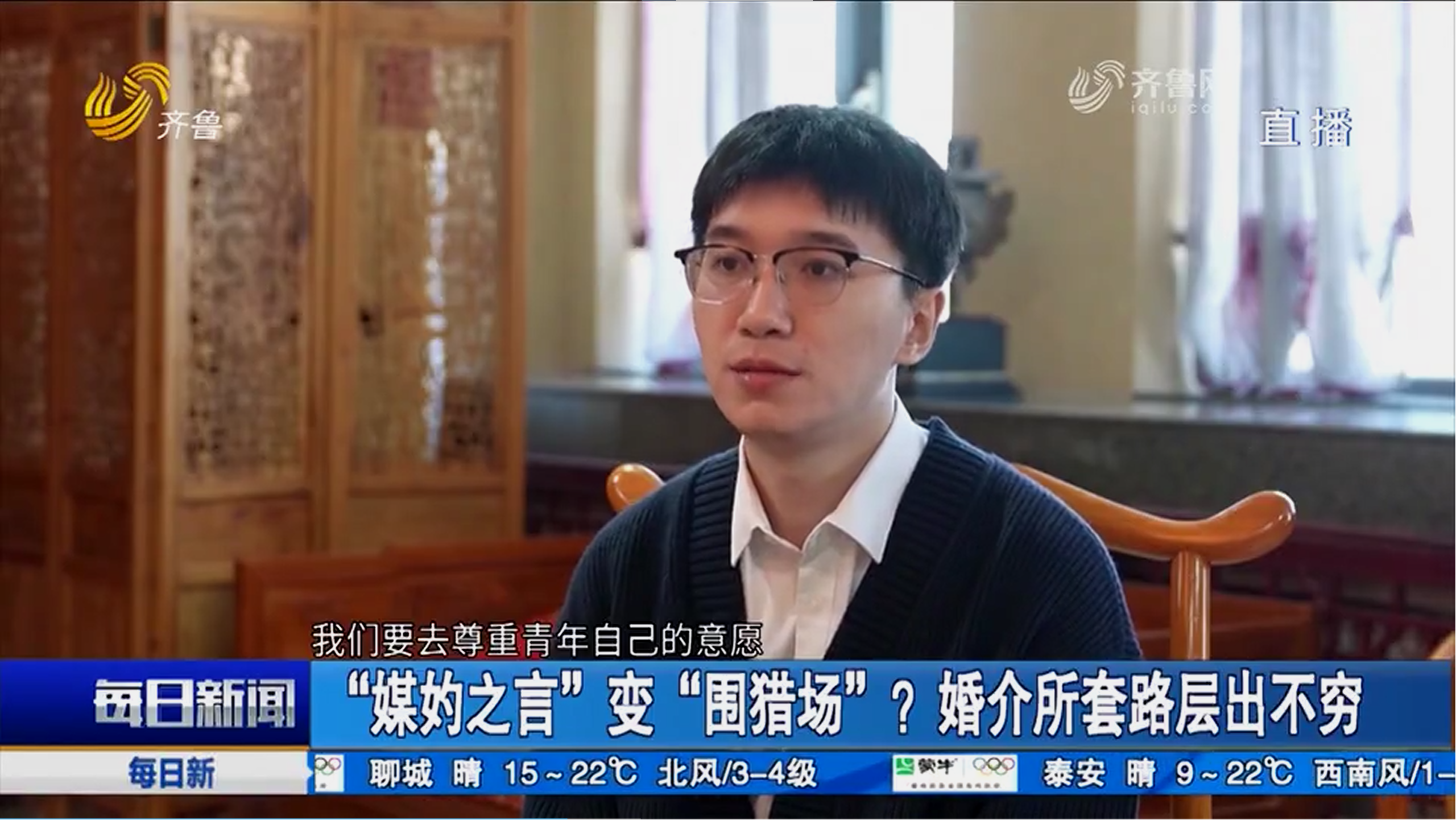 beat365英国官方网站社会工作系助理研究员于志强接受齐鲁电视台采访并分享了对于“婚介乱象”的观点与建议。于志强认为,婚介机构作为利益导向的经营主体,会存在促进顾客双方快速实现匹配的诱导机制,但该过程应当以尊重青年自身意愿和个性化定制为前提。