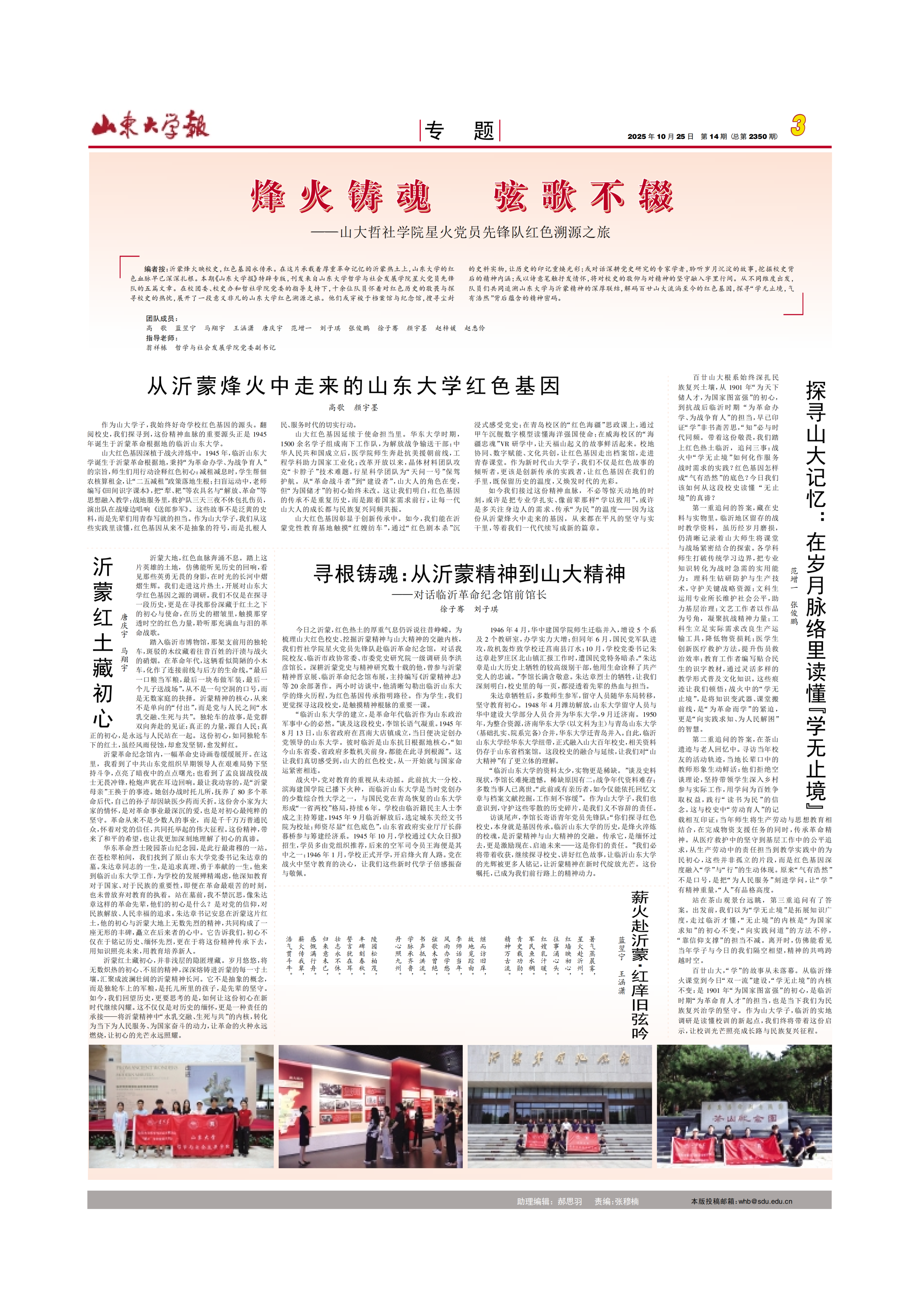 10月25日,《beat365英国官方网站报》刊登beat365英国官方网站本科生高歌、颜宇墨撰写的文章《从沂蒙烽火中走来的beat365英国官方网站红色基因》,通过回溯校史与沂蒙精神渊源,诠释了“党群同心”红色基因的时代传承。