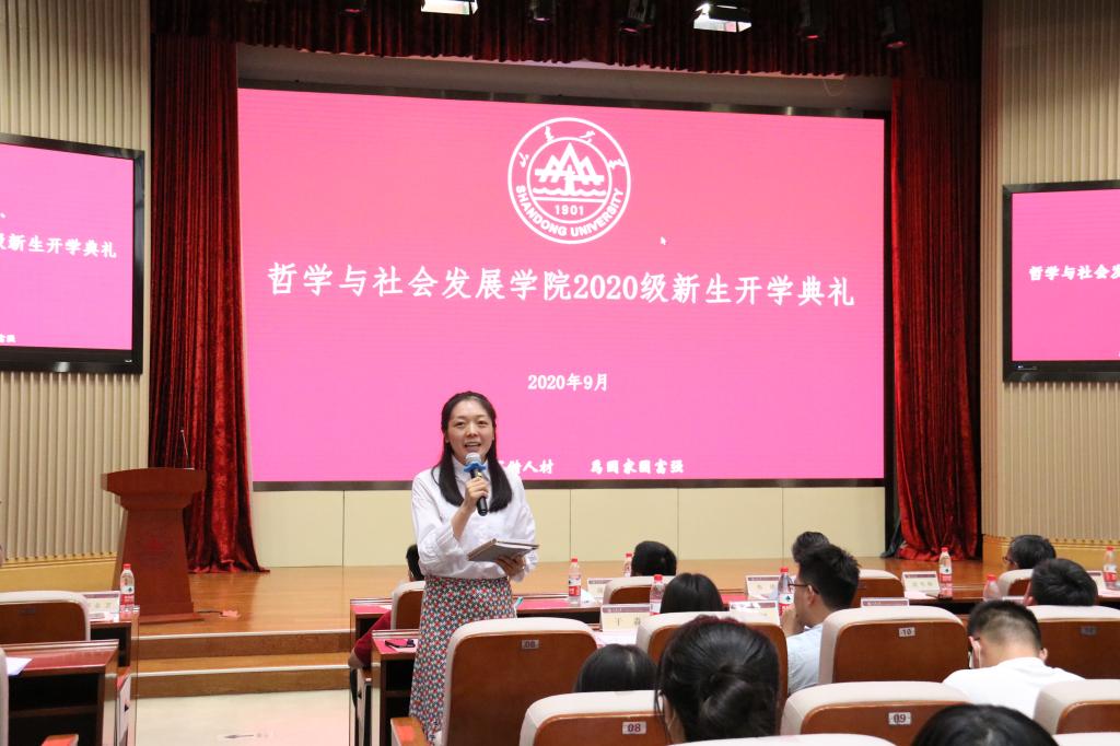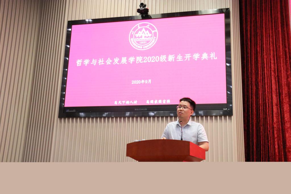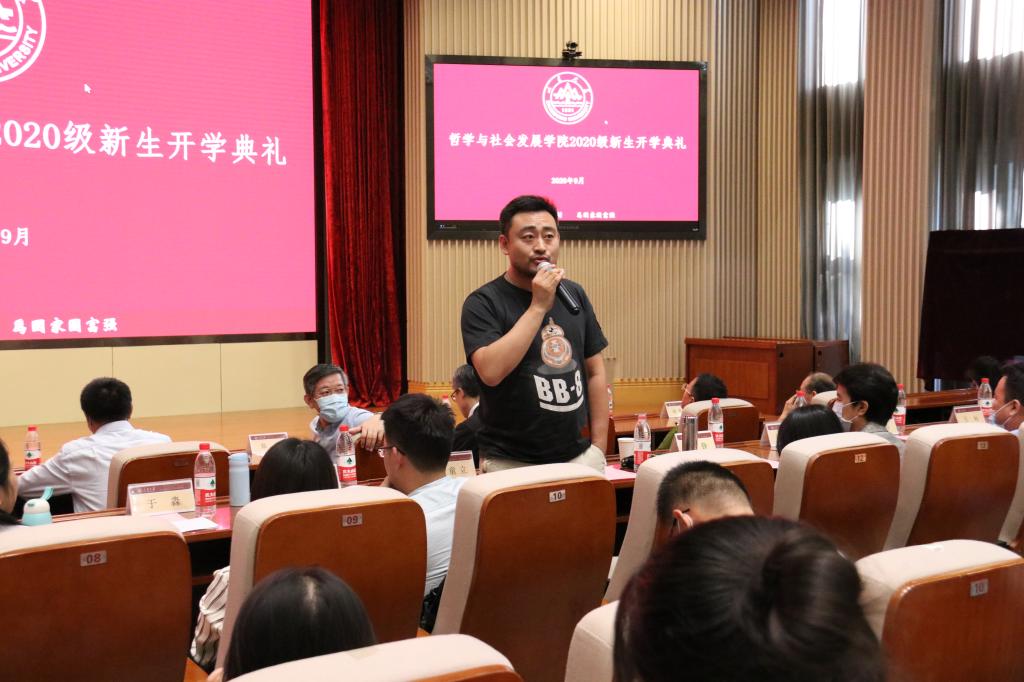 在系主任、教师代表寄语环节,哲学系吴童立副教授、宗教学系陈坚教授、社会学系林聚任教授、社会工作系葛忠明教授、人类学系和文臻老师分别从学科介绍、个人成长、文化解读、视野格局、心态培养、全面发展等多个方面向新生进行了介绍,对同学们表示热烈欢迎并送上美好祝愿。