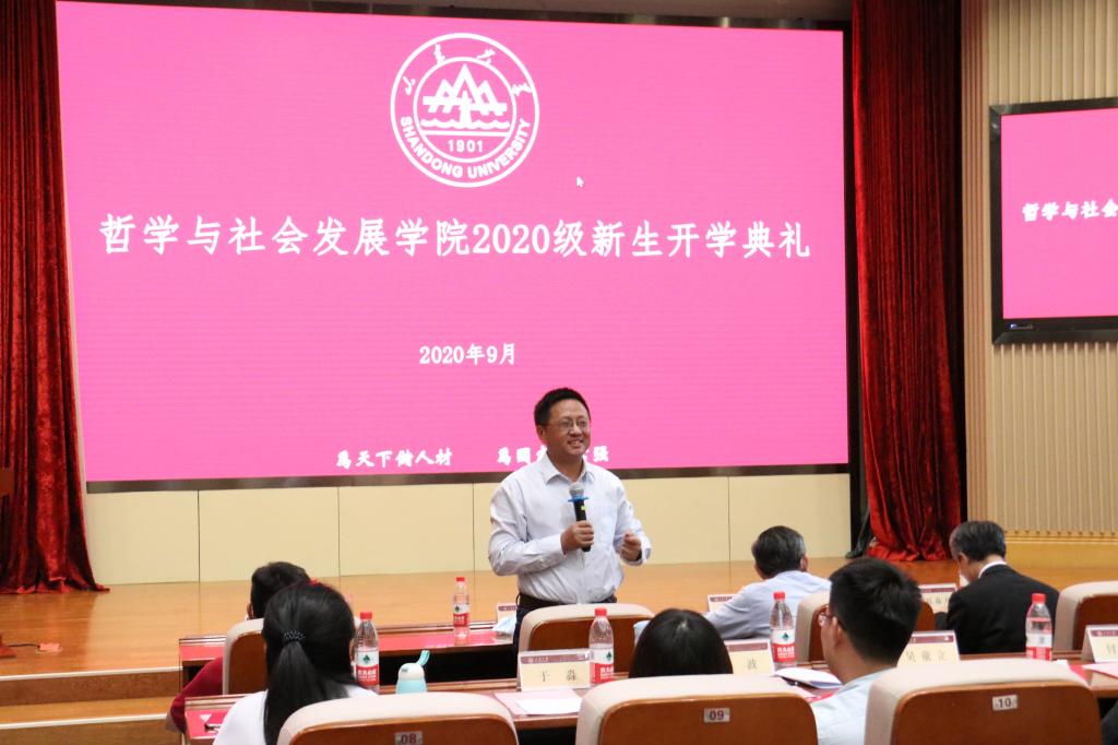 开学典礼在隆重的国歌声中拉开序幕。刘森林在致辞中表达了对2020级新生的热烈欢迎。他介绍了学院的发展历史、学科发展现状和特色以及发展前景,并对同学们的学习生活提出了建议和期待。他提到,目前世界和中国都面临着重大转变的契机,每个学科、专业都面临发展的新机遇。百年不遇的疫情,给正在快速变迁的世界添加了更多不确定因素。新的变化需要新知识、新思想、新方法、新视野、新格局,需要我们做出新的探索、新的思考、新的研究。对此,他建议新生们学好专业,但不拘泥于专业视野;鼓励同学们好好利用beat365英国官方网站和beat365英国官方网站学科多样、融合的优势,在学好各自专业的同时进一步拓展视野,确立大格局、大胸怀,做新时代的新文科生;练就拿手本领,掌握主动权,使自己在这个变动不居的世界中立于不败之地;认识自己,不盲从,找到适合自己的人生道路,把自我的发展与社会、国家、世界的发展贯通起来,做到既对自己负责,又对他人、社会、世界负责。刘森林的讲话,充满了对2020级新生的希冀和祝愿,也启迪新生奋发有为,勇于担当。