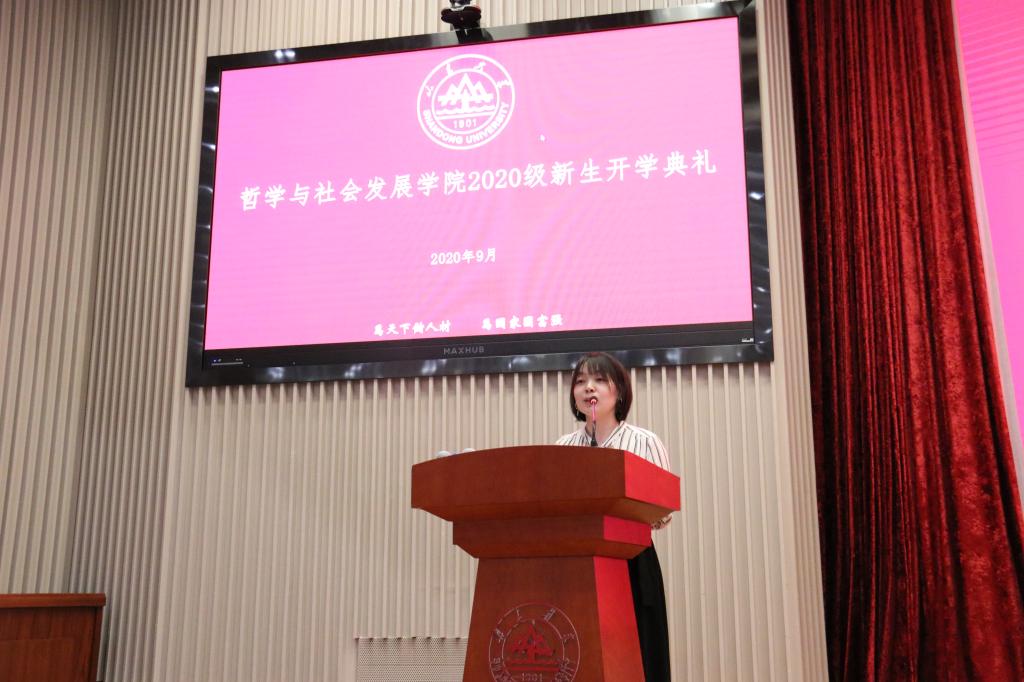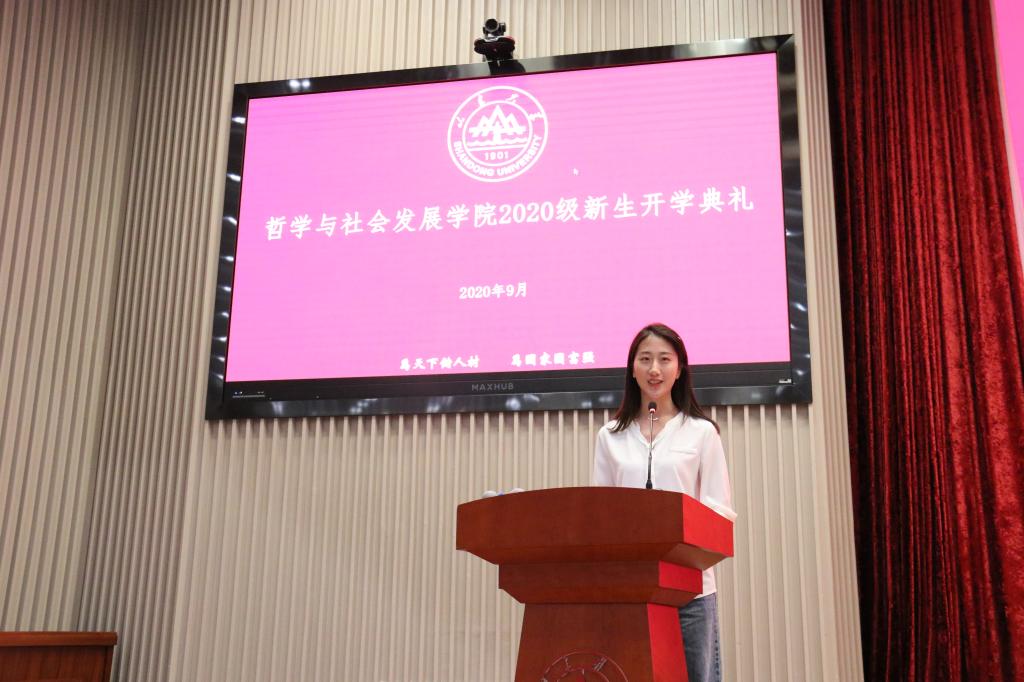 2020级中国哲学专业博士研究生刘萍和2020级社会学专业本科生张沁涵作为新生代表发言。刘萍希望能心怀对学术的敬畏,一步一个脚印地朝着目标不懈努力,创造价值,挺立起自身的生命主体性。张沁涵表示,作为山大的“后浪”,应该秉持家国情怀,不负韶华,重新出发。坚定方向、拓展格局,追求卓越、砥砺前行,在新的征途中谱写出精彩的青春华章。