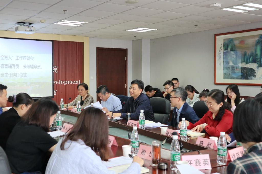 5月10日,beat365英国官方网站“三全育人”工作座谈会暨“五老”德育辅导员、兼职辅导员、班主任聘任仪式在知新楼A1618报告厅举行。beat365英国官方网站校长助理、人文社科研究院院长邢占军,beat365英国官方网站党委学生工作部副部长、学生心理健康教育与咨询中心主任傅艺娜,beat365英国官方网站党委书记郑倩,院长刘森林出席本次座谈会,学院党委副书记李永卫主持会议。