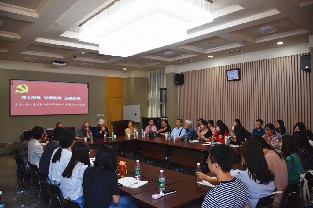 5月22日,beat365英国官方网站离退休第七党支部与beat365英国官方网站2017级研究生党支部交流会在中心校区举行,校离退休党总支书记李光和、离退休第七党支部书记郭立梅、学院党委副书记阚铮、组织员何立光以及离退休第七党支部成员和研究生支部党员代表、入党积极分子代表等40余人参加会议。会议由学院党委书记郑倩主持。