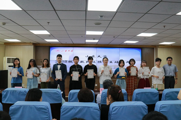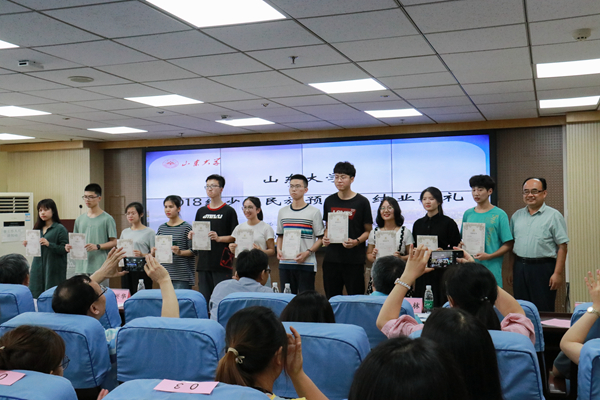 学院为预科生准备了结业纪念品,镌刻着学号的定制戒指、印有山大哲社印记的U盘和帆布袋,都承载着学院对预科生们的不舍与祝福。典礼最后,仝兴华、周作福、刘传勇、刘森林、郑倩、程胜利为少数民族预科生颁发结业证书。