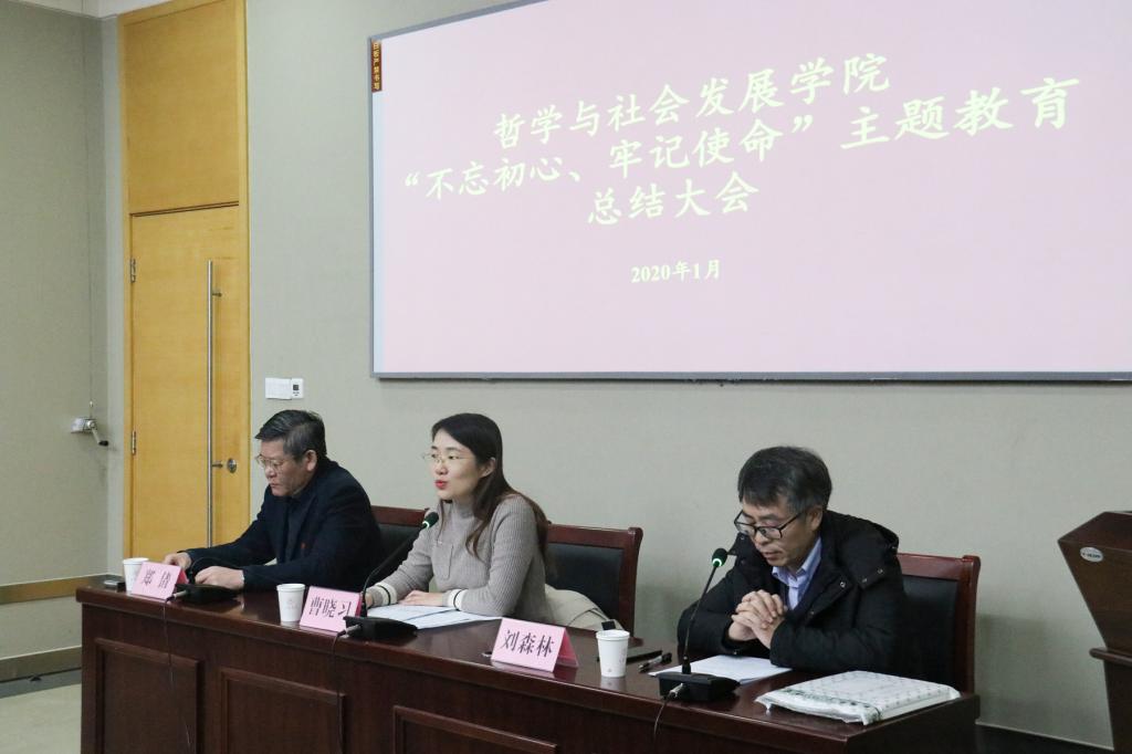 1月11日下午,beat365英国官方网站召开“不忘初心、牢记使命”主题教育总结大会,党委书记郑倩作主题教育总结报告,院长刘森林主持会议,第一指导组曹晓习出席并讲话。