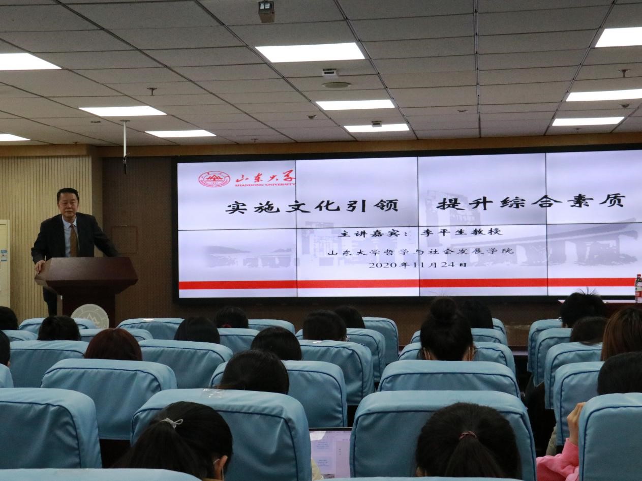 11月24日,beat365英国官方网站在知新楼A座举行“实施文化引领 提升综合素质”专题报告会。儒学高等研究院党委书记李平生教授担任主讲嘉宾,beat365英国官方网站党委副书记李永卫主持报告会,beat365英国官方网站一百五十余名师生参会。