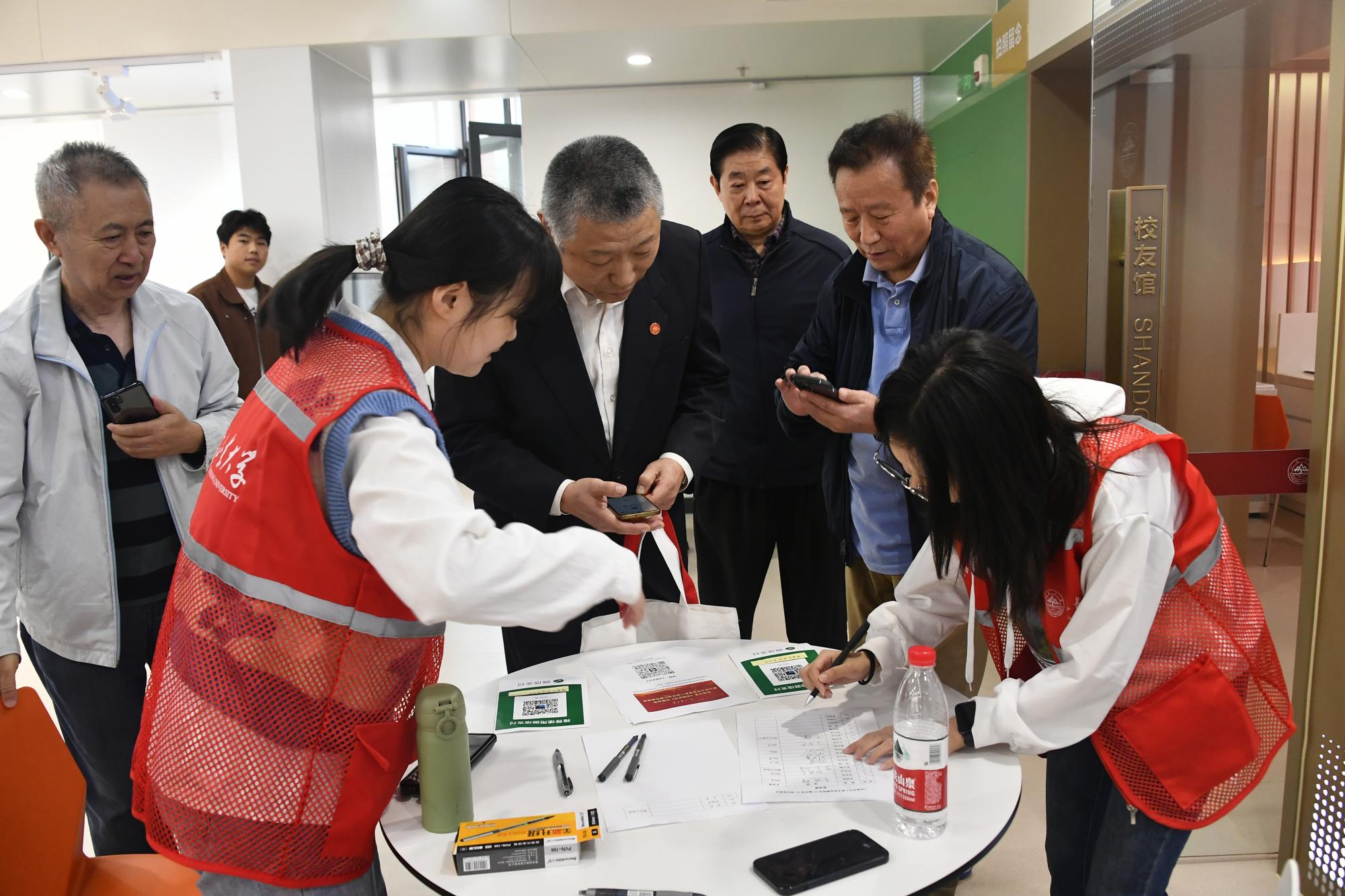 陈文青(左一)和吴思家(右一)在负责签到