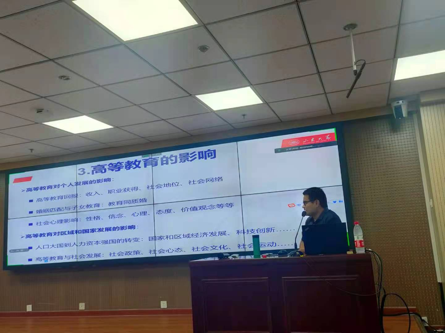 第二部分,李忠路老师具体来讲述了社会学视角下的高等教育。老师在高等教育社会学的研究议题中选取了教育获得和大学影响这两个同学们最感兴趣的话题。从高等教育机会的获得和高等教育对个人和国家的影响来讲述社会学视角下的高等教育。