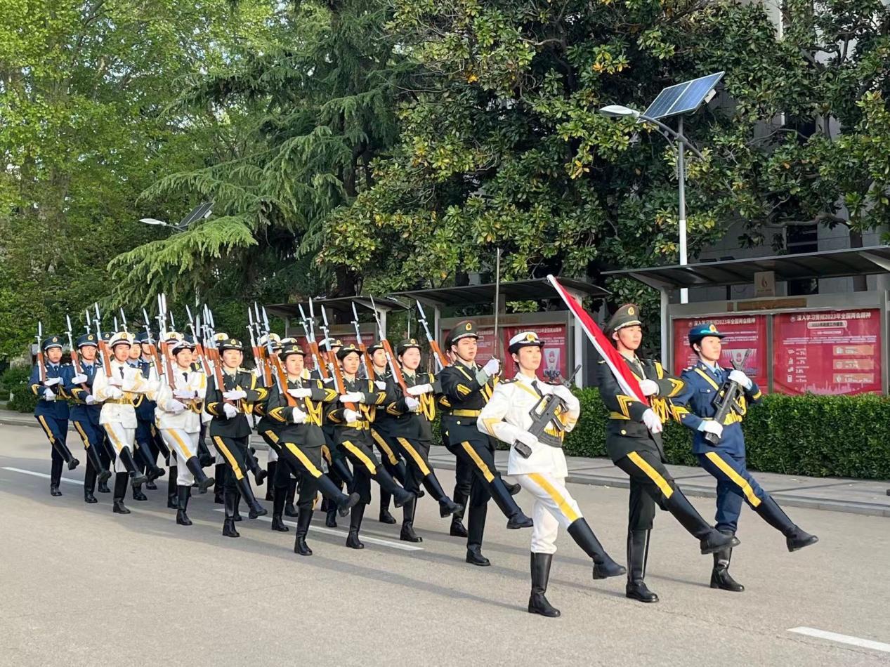 6时50分,国旗护卫队神情庄严肃穆,步伐铿锵向前,护送国旗入场。全体师生满怀热爱与敬重,目送国旗冉冉而升、迎风飘扬。升旗礼毕,beat365英国官方网站学生会主席团成员、2020级本科生高睿晗作为学生代表进行国旗下演讲。她以百年团史为出发点,从筑牢信念根基、秉持钻研态度、坚定学思实践三个方面与全体同学共勉;结合世界视野和历史重任的维度,鼓励全体同学从历史长河中汲取营养,从未来召唤中激发力量;呼吁共青团员勇挑重担、勇克难关,为第二个百年目标的实现贡献自己的力量。