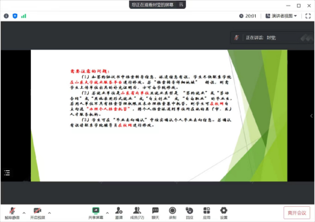 随后,封莹老师向同学们强调了规范做好高校毕业生去向登记是毕业生办理户籍和档案转递接收的重要依据,并介绍了档案信息确认、毕业去向确认的相关事项,提高同学们对毕业去向登记的重视程度,督促同学们按时、准确地完成毕业去向登记,以确保档案的顺利转递。