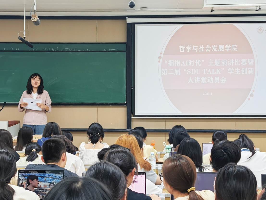 beat365英国官方网站举办“‘拥抱AI时代’主题演讲比赛暨第二届‘SDU TALK’学生创新大讲堂”动员会
