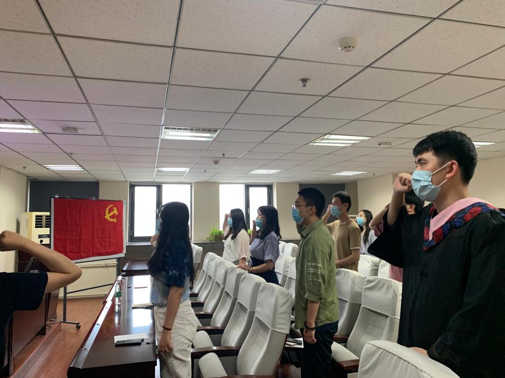 会议最后,毕业生党员集体重温入党誓词。全体党员举起右手、握紧拳头,注视党旗,庄严宣誓,重温入党誓词时的庄严承诺和理想信念。