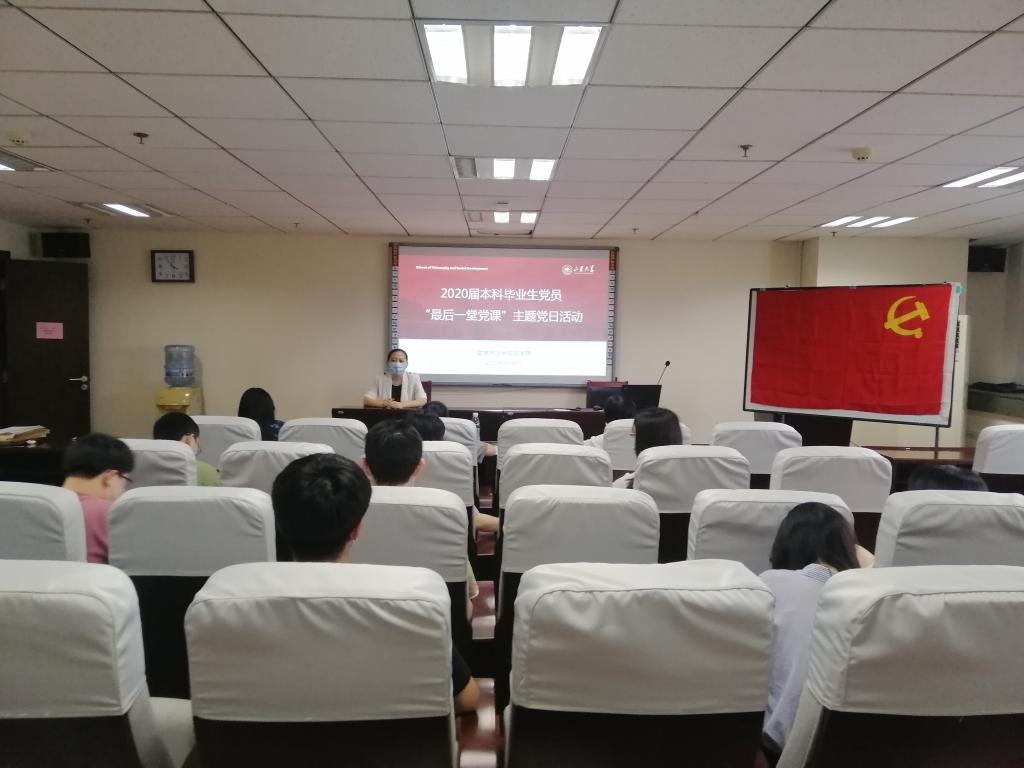 为加强党性教育,坚定毕业生党员理想信念,6月18日下午,beat365英国官方网站在知新楼A1408会议室举行2020届本科毕业生“最后一堂党课”主题党日活动。beat365英国官方网站党委副书记李永卫出席,各年级辅导员、全体毕业生党员参加了此次活动。