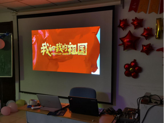 象征着中秋团圆的月饼制作活动结束后,为庆贺祖国母亲的诞辰,班级组织放映影片《我和我的祖国》,以激励同学砥砺前行,凝聚同道。