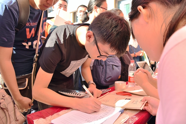 9月8日迎新工作正式开展。上午出现了新生集中报到的一个 小高潮,迎新工作如火如荼地进行着。学生接待处的工作人员为新生发放开学相关材料,办理入住手续,引领新生有条不紊地完成报到的各项程序,并协助新生领取学生会准备的宣传袋和纪念品。传媒社为新生和家长在宣传墙前合影留念,之后志愿者们负责将每一名到来的新生及家长送到宿舍,安置好之后离开。醒目的红色欢迎条幅、学生会成员们热情周到的服务、志愿者们不辞辛苦的身影,让学院迎新现场充满了家的温馨。