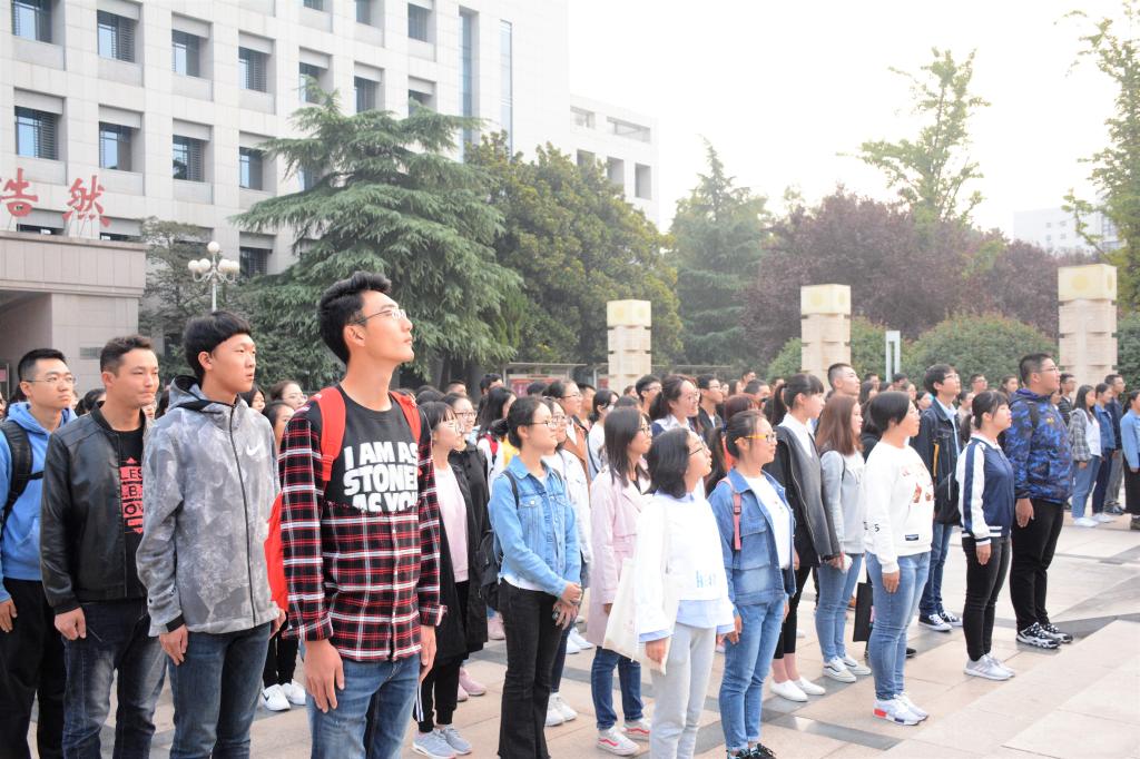 2018年10月8日,beat365英国官方网站在大成广场升旗台前举行了2018级本科生新学期升旗仪式。辅导员马雁思与beat365英国官方网站全体本科新生参加了本次仪式。