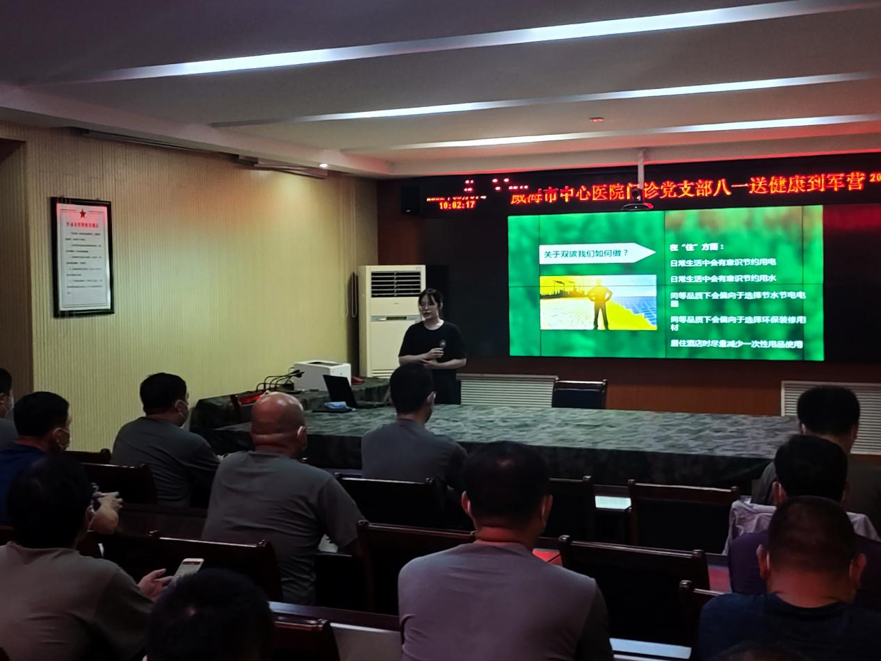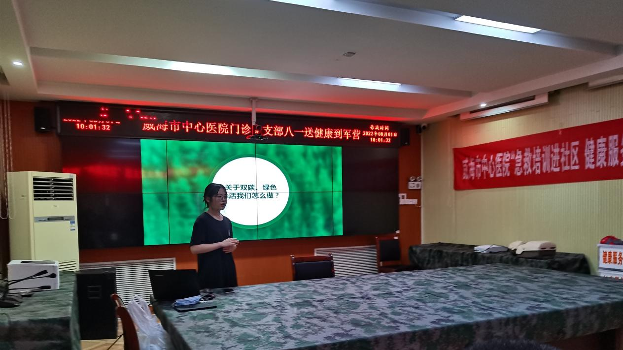 8月1日上午10点,beat365英国官方网站“护园”赴山东多地关于双碳背景下城乡居民低碳意识调研宣讲团的团队成员董雨姝在山东省威海市文登区人民武装部开展宣讲活动。活动有数十名武装部战士参与,现场气氛良好、反响热烈。