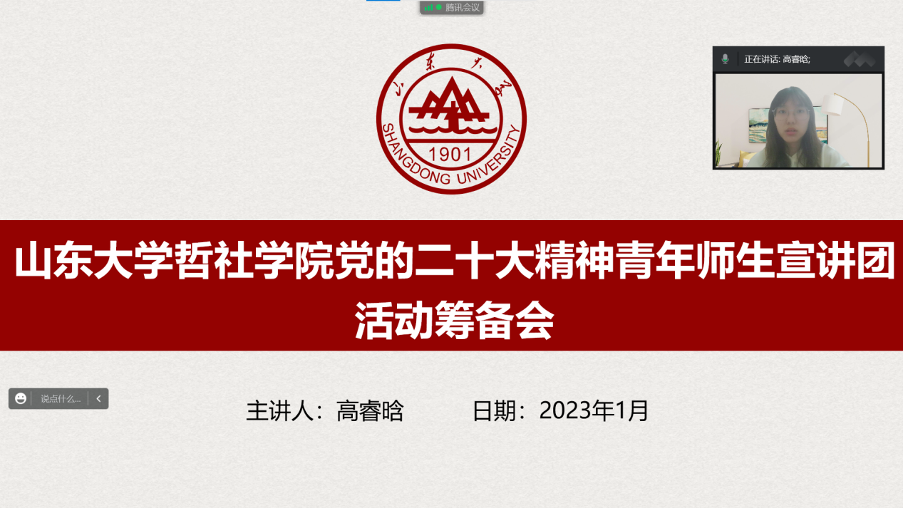 实践前期,团队通过范围问卷调查,基于民声民愿,确定“依法治国”“民生福祉”“青年使命”为寒假宣讲实践主题。同时,为深入学习领会党的二十大精神及其道理学理哲理,切实把党的创新理论贯彻落实到实践中,团队加强自身素养,围绕《中共中央关于党的百年奋斗重大成就和历史经验的决议》与党的二十大报告开展以周为期的学习分享会,丰厚团队学识基础同时筑牢理想信念根基,充分发挥学在先、学在前的示范引领作用,努力在先学先懂、真学真懂中落实落地、见行见效。在“联学共建、资源共享、发展共赢”的建设思路下,beat365英国官方网站党的二十大精神青年师生宣讲团积极组织参与宣讲团联动交流会,与新闻传播学院宣讲团联学中发挥专业特色,在打磨优化宣讲内容的同时有效提升宣讲本领、凝聚宣传合力。