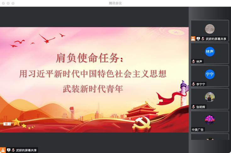青年之担,当从今起。武妍等同学也在河南省信阳市中美广告有限公司展开了宣讲,他们以“肩负使命任务,用习近平新时代中国特色社会主义思想武装新时代青年”为主题,生动地讲解了从习近平新时代中国特色社会主义思想中深刻感悟的党和人民的力量、真理的力量、实践的力量、情感的力量。并告诉我们,在向第二个百年奋斗目标进军的关键时刻,新时代青年要从历史之河中汲取营养,坚定历史自信,增强历史主动;要从未来召唤中激发力量,肩负民族重托,扛起时代重担!