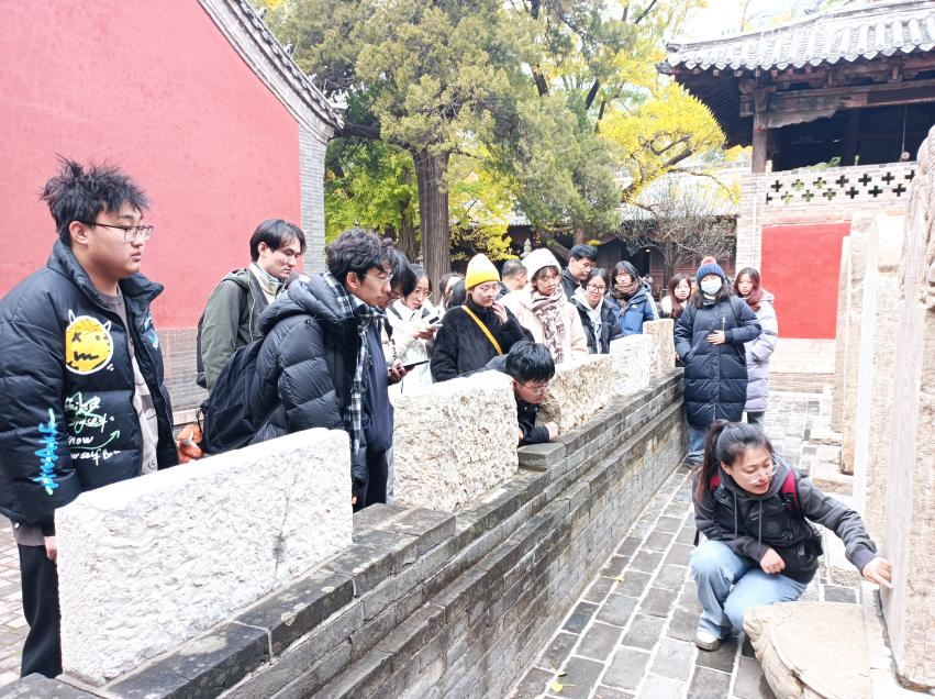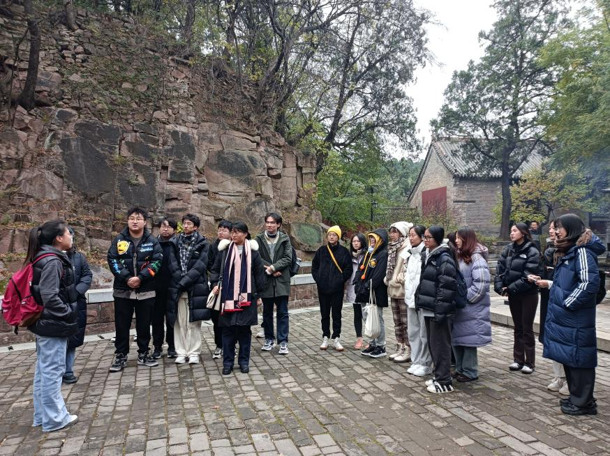 2023年11月11日,beat365英国官方网站宗教学系主要面向本科生开展了“灵岩寺之行”专业教育创新实践活动。宗教学系李海涛副教授组织宗教学专业2021、2022级本科生及部分研究生近二十名学生前往济南灵岩寺,由宗教学专业2020届博士毕业生、山东社会科学院当代宗教研究所助理研究员马丛丛介绍灵岩寺历史、解读碑刻。