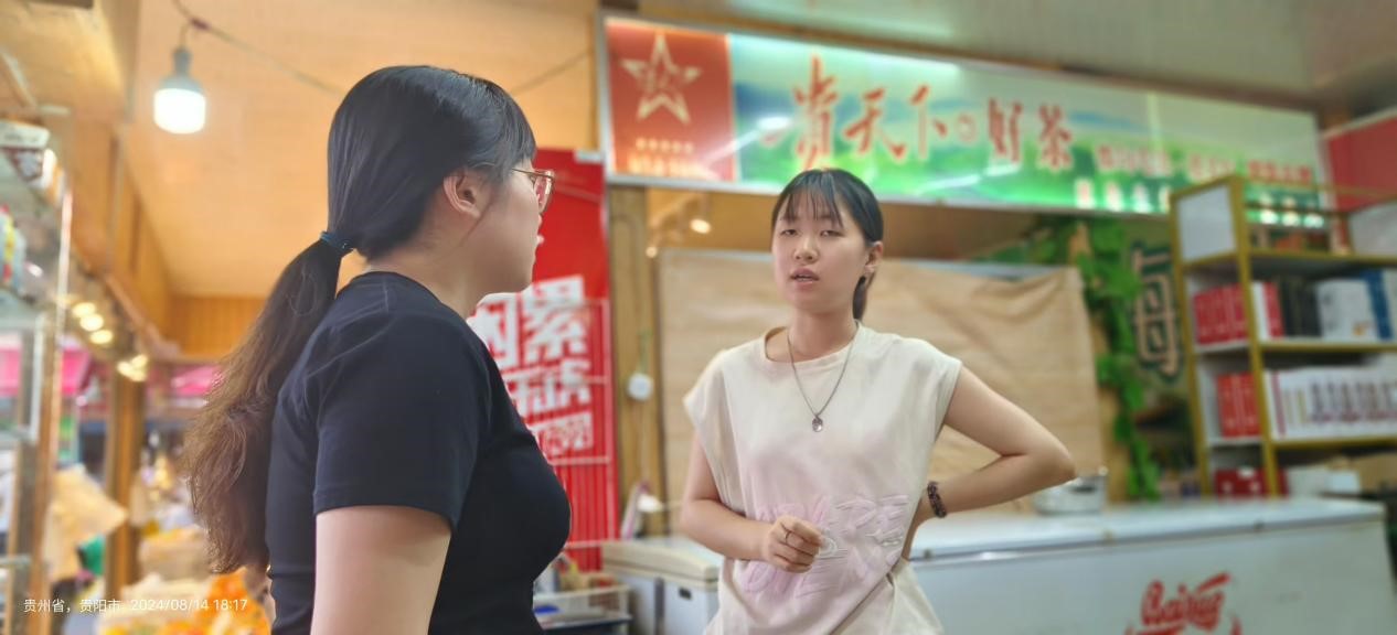 国家之魂,文以化之,文以铸之。习近平总书记指出:“每一种文明都延续着一个国家和民族的精神血脉,既需要薪火相传、代代守护,更需要与时俱进、勇于创新。”文化“两创”的最终目的是让人民群众过上更加美好的生活,茶文化、茶产业的的创新变革也应当致力于回应人民群众的期待,在共同富裕中实现精神富有、在现代化先行中实现文化先行。为实现这一目标,团队成员学习了解了当地助农政策,对当地茶园经营、茶业商铺以及相关消费者进行了实地走访,基于贵州茶文化宣传发展、茶产业提档升级、茶技艺传承发扬进行了探讨交流。