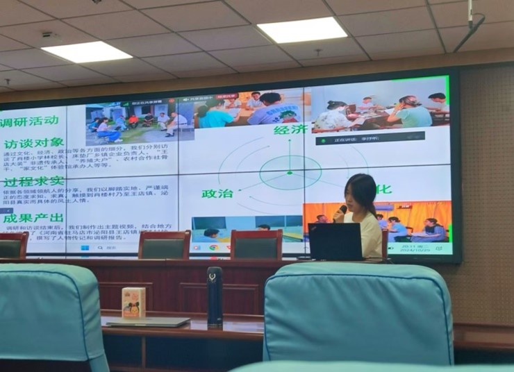 三个社会实践团队代表同学分享完毕后,刘纾言同学围绕选题立项,团队建设,结果呈现等几个重要节点进行发散,解决经验不足者参与社会实践的常见问题。此外,她着重分析了社会实践带给她的多方面成长,希望新生能够牢记本心,在社会实践中“收获热爱,探寻边界”。