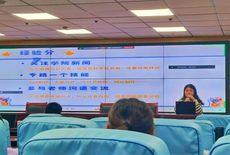 首先,由山大beat365英国官方网站乐智者赴德州乐陵夏令营团队的刘冰霄进行分享。她通过展示团队项目的前期立项过程和最终成果,阐述了哲学教育在基层支教活动中的重要性和可为性,同时向同学们讲解了社会实践项目在立项结项过程中可能遇到的问题和解决方案。其中关于夏令营筹备和实施经验的详细分享,使在场新生受益匪浅。