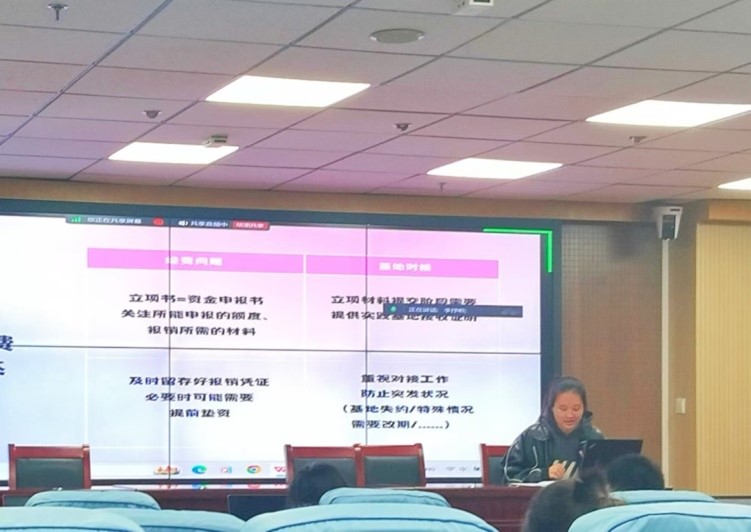 赵悉伶同学则是从自己丰富的社会实践经历出发,就项目时间划分对于竞选压力和难度上限的影响、自主或专项主题活动立项的要求和区别、团队组建和明确分工三个方面进行讲解,强调过程记录和多渠道宣传的重要性,并且总结了部分投稿渠道供新生参考。