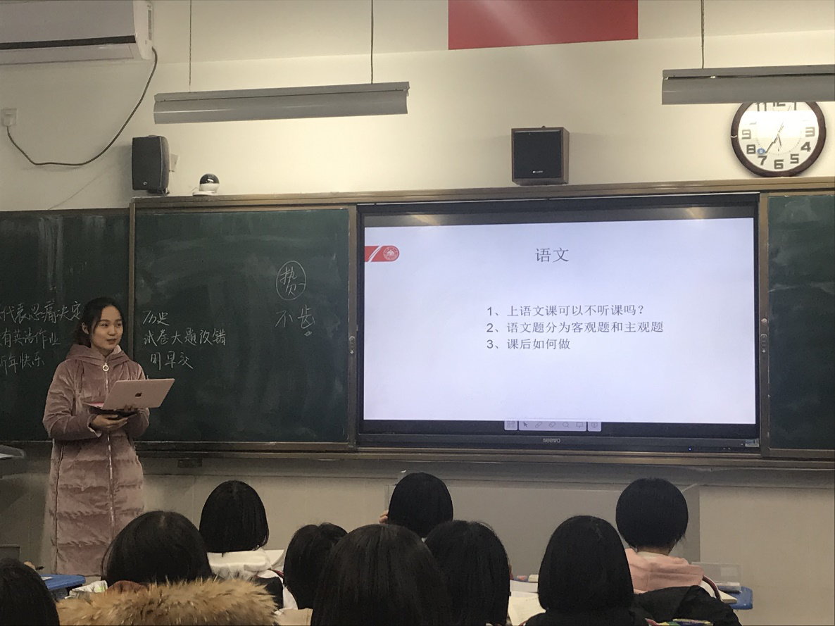 1月21号,beat365英国官方网站2018级经济学院的学生陈曦回到高中母校进行回访宣讲。她代表我们团队回到了山东省东营市利津县第一中学,作为2015级毕业生,在2016级(3)班、(6)班、(13)班、(14)班开展了对beat365英国官方网站的宣传,向学弟学妹解疑答惑。