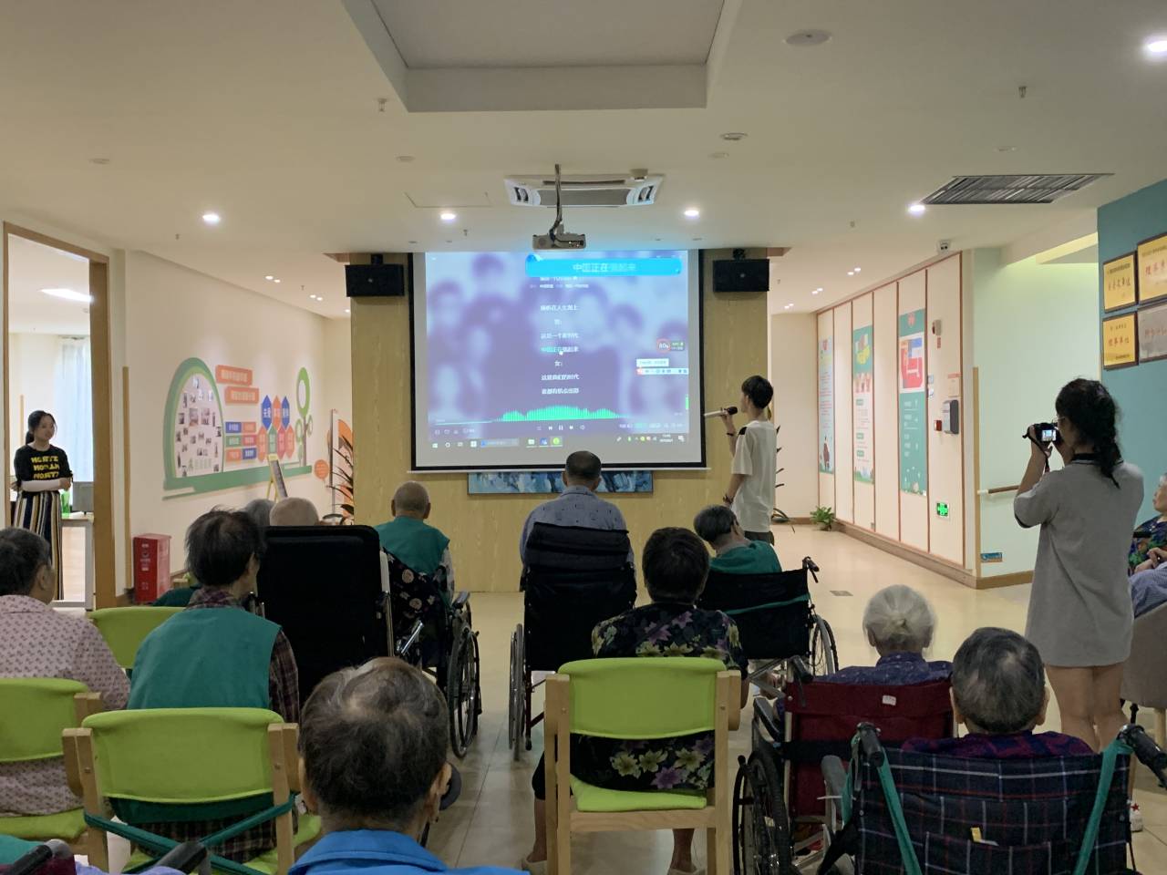随后,在负责人的介绍之后,团队成员与一些老人打招呼、聊天,并在负责人的邀请下,参加了对方的书法课。团队成员纷纷坐在老人们的旁边,一边听老人们介绍福利院的活动、自身的情况等等,又一边帮助老人们在老师的指导下进行书法练习。通过团队成员的访谈得知:福利院会进行一些活动帮助丰富老人们的生活。之后,团队成员分成两组分别去不同的地方清洗一些娱乐设施。