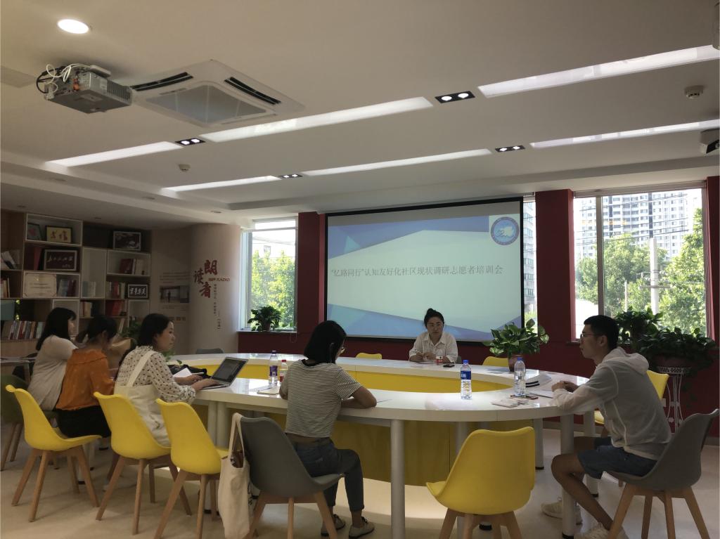 8月20日上午10时,beat365英国官方网站beat365英国官方网站“爱忆行”济南市认知症友好化社区建设及需求情况调研团于解放路社区进行行前培训,济南市基爱社会工作服务中心负责人李明叶及解放路社区专业社工赵飞为团队成员进行调研相关培训。