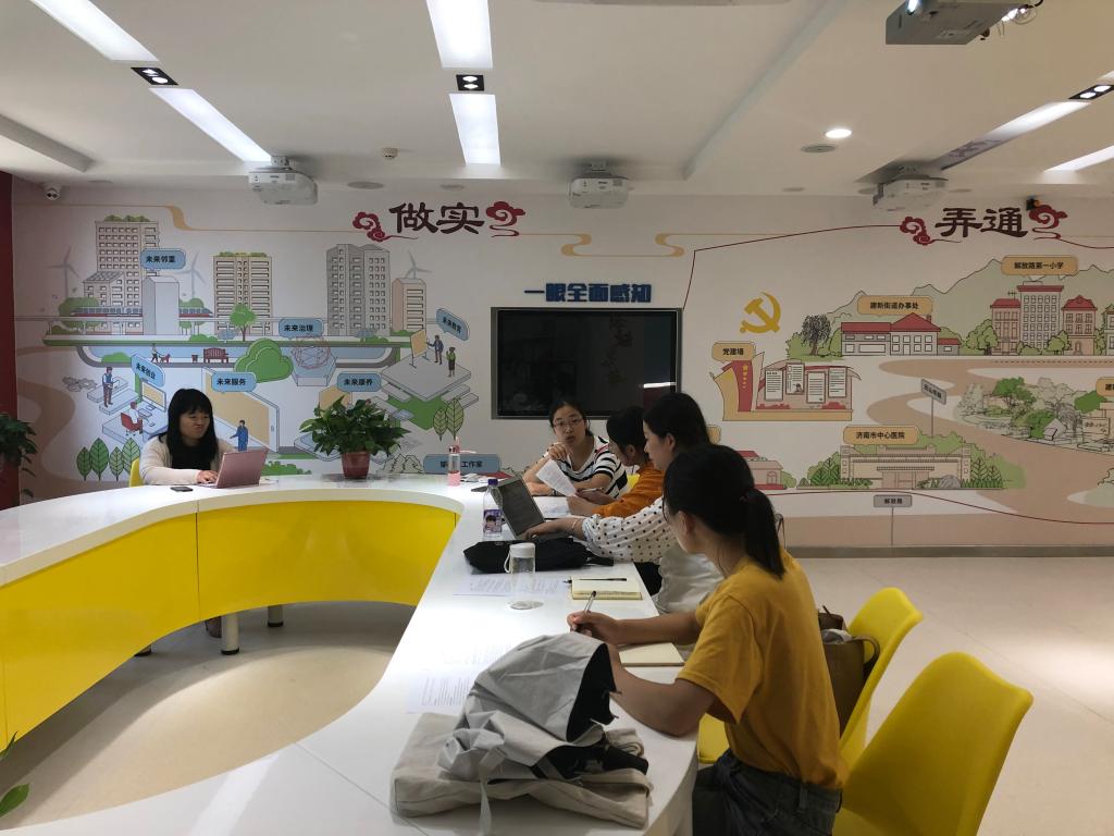 试调研可以通过小范围试点,发现不经过实践所无法发现的种种理论问题、难以预料的实际问题以及调研计划中的薄弱环节与遗漏的空白部分。同时,本次试调研也是前期访员培训的总结活动。通过本次实践,可以观察出团队成员培训的成效,并在试调研中加强团队成员的配合度。本次试调研中,团队成员分为三小组,三人一组,对解放路社区工作人员、家属进行试调研。调研结束后,李明叶对于团队成员的调研表现进行点评与总结。她认为,团队成员对于访谈内容已经有了基本的掌握,但是部分成员仍存在着无法脱离访谈提纲、对于问题次序难以灵活掌握的问题。此外,在试访谈过程中,团队成员发现,部分访谈内容与主题关联性较弱,或存在着重复提问的问题。因此,在试调研之后,团队成员分别对本次试访谈心得进行交流,在团队讨论后,修改访谈内容,以便后期在进行正式访谈的过程中,避免漏洞和缺失。