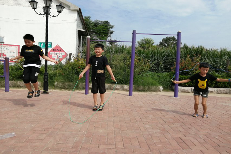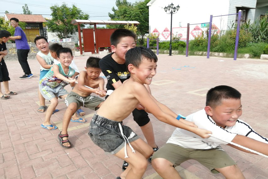 下午两点半,尽管天气仍显炎热,但热情的孩子们早已来到比赛地点,等候运动会的开始。简单布置好场地并讲解了规则以后,我们的趣味运动会正式开始。在本次运动会中,我们策划了孩子们熟悉且喜爱的运动,例如,跳大绳、单人跳绳、踢毽子、跳皮筋、掷沙包、赛跑、拔河等等。每一个项目都得到了孩子们热情的响应,大家踊跃参加,并邀请我们也一同参与其中的团队项目。热闹的运动会也吸引了许多村民的围观。