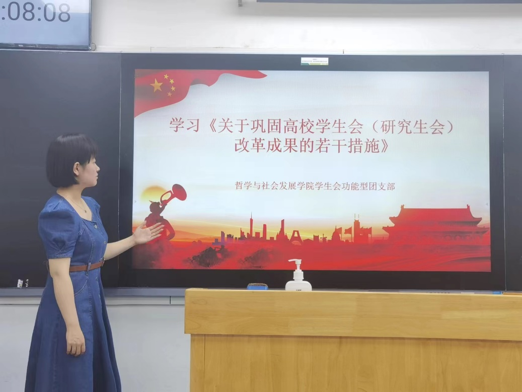 全国学联明确指出,学联学生会要“聚焦政治引领,以习近平新时代中国特色社会主义思想为指导,认真学习宣传贯彻党的二十大精神”,做好思想引领工作。综合事务部表示,会将党的二十大精神、社会主义核心价值观引领进一步融入到部门开展的各项工作中,探索多方式多样态的宣传方式,让新时代中国特色社会主义思想入心入脑。紧接着,学术部、体育部、文艺部等部门结合工作报告和实践经验进行发言,表明将进一步打造“建设服务平台,助力学生就业,繁荣校园文化,维护学生权益”的哲社院会这一共同目标,力争让同学们更有幸福感、满足感。最后,学生会主席张煜总结会议成果,本次学习会圆满结束。