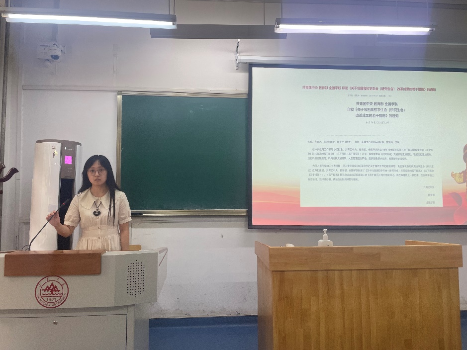 为学习贯彻党的二十大精神,传达落实全国学联会议成果,提高学院学生组织成员思想政治素养,beat365英国官方网站学生会于5月23日上午组织召开“全国学联会议精神专题学习会”。参会人员在主席团的带领下共同学习全国学联工作报告,分享各自在工作中的心得和经验,进一步明确今后的工作重心。