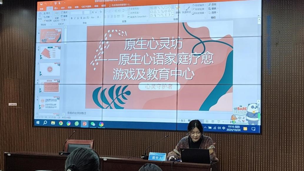 接下来,beat365英国官方网站原生心灵坊项目组负责人李勃慧从“创业背景”“产品技术”“市场分析”“团队战略”“社会价值”“发展愿景”六个方面为同学们带来项目的论证分享。其中,在产品开发环节,她强调拥有一个好想法的重要性,鼓励同学们主动用一个好想法推动一支好队伍的建设,提出要重视团队分工合作,加强多学科相互交叉借鉴,充分发挥跨学科融合优势,不断推进项目成果的完善与发展。