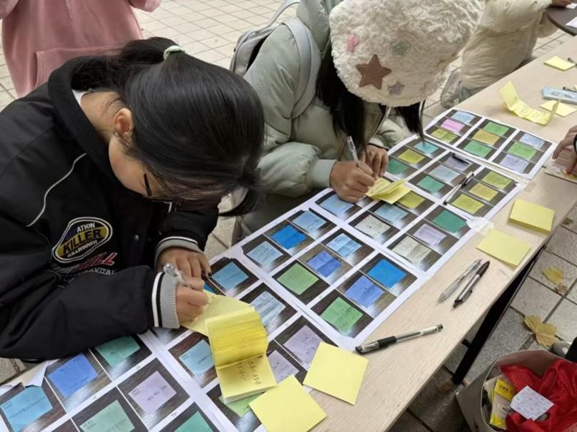 活动当天,展台上五颜六色的便利贴吸引了大量学生驻足参与。展台上所展示的是来自支教地区小学生的问题,涵盖学习、生活、心理等多个领域,孩子们对知识的渴望和对未来的期盼在每一个问题中得以体现。参与的大学生们积极拿起笔,认真书写自己的回答和建议,细致地解答孩子们提出的疑问。诸如“你们喜欢上什么课?”“你们有图书馆吗?”“为什么小鱼在水里游?”等问题,充满童真,深刻体现了乡村孩子们对教育的渴望和对美好生活的憧憬。