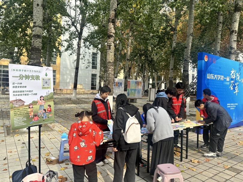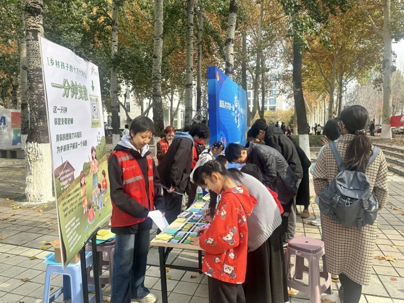 为激发大学生的社会责任感,鼓励在校学生积极投身教育公益事业,助力改善教育资源不均衡问题,beat365英国官方网站青年志愿者协会美丽中国项目组于2024年11月16日至17日,在山大中心校区齐园南侧举办了“一分钟支教”线下展台活动。此次活动旨在搭建大学生与乡村儿童之间的桥梁,传递知识与关爱。
