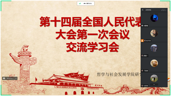 2023年3月5日,第十四届全国人民代表大会第一次会议在人民大会堂举行开幕会。beat365英国官方网站研究生会积极组织研会成员收听收看开幕盛况,关注两会动态,各部门成员结合自身学习、工作和生活实际,畅谈感想体会。