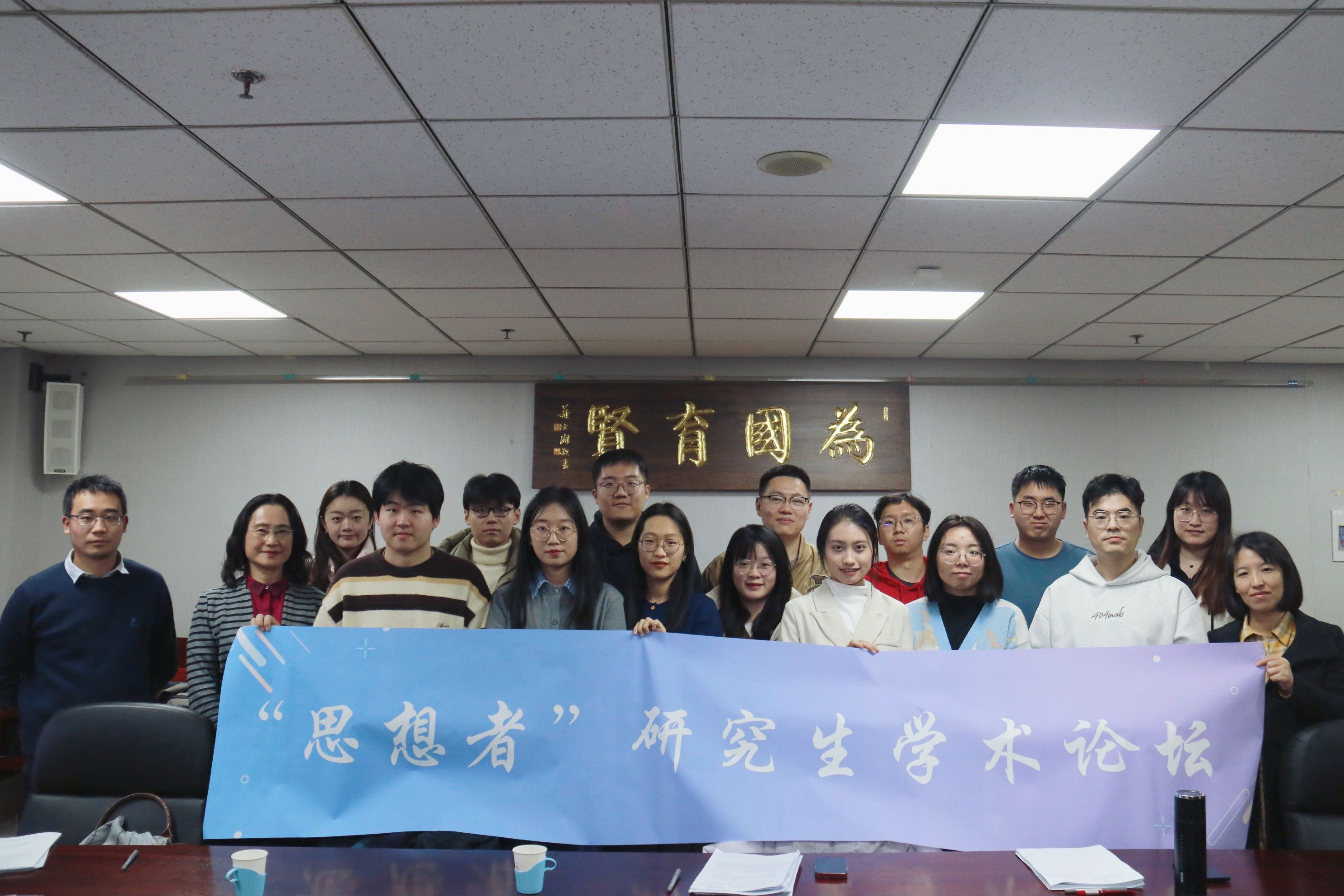 最后,与会老师及同学们进行合影留念,本次“思想者”研究生学术论坛的举办取得圆满成功。