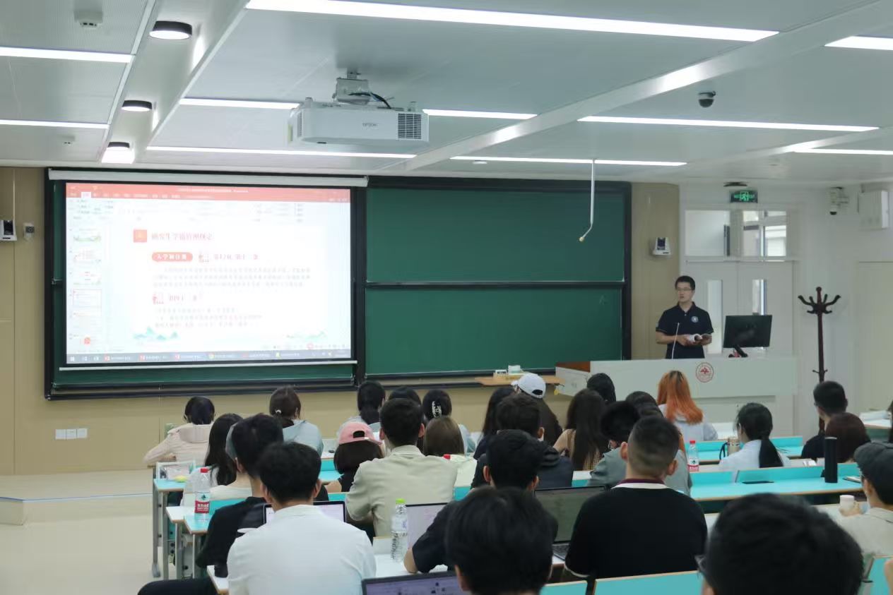 为帮助2025级研究生新生尽快适应研究生阶段的学习生活,树立良好的行为规范和纪律意识,9月4日下午,beat365英国官方网站以“规矩—知多少”为主题,在中心校区理综楼209d室开展了研究生新生入学教育第四课:研究生新生制度规范学习教育。学院研究生辅导员吕汶鑫主讲。