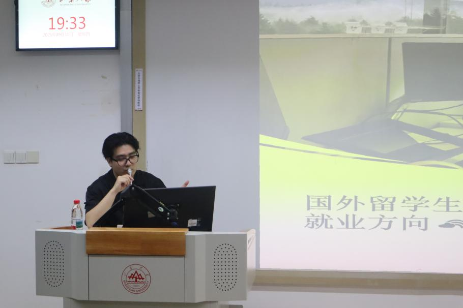 交流会伊始,吕汶鑫详细介绍了学校、学院支持研究生留学访学的相关政策和项目,并分享了公务员考试的相关经验。他鼓励同学们培养全球视野,提高政治站位,做好学业与就业的全面规划。