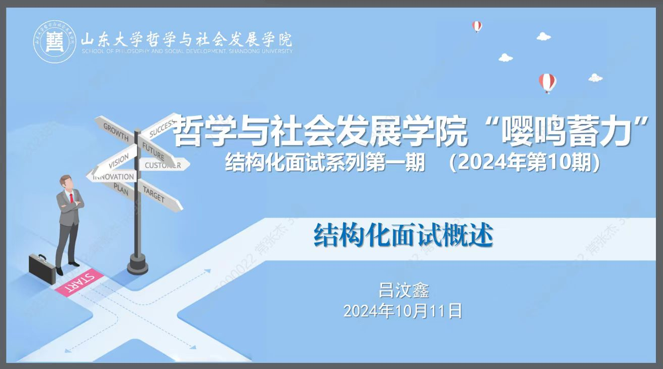 2024年10月12日,为强化就业导向,增强同学们的应考能力,哲社研会就业实践中心邀请学院辅导员吕汶鑫老师开展了2024年度“嘤鸣蓄力”公考面试指导系列讲座第一期(总第12期),beat365英国官方网站、政治学与公共管理学院五十余名学生参加讲座。