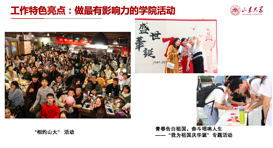 从由beat365英国官方网站主办、八院联合的“相约山大”活动,到我们在国庆期间开展的“青春告白祖国”爱国主题宣传活动,beat365英国官方网站研究生会积极探索跨院联合机制,实现院际交流合作,两次跨院活动吸引了校内500余名学生参与,哲社研会致力于打造最有影响力的学院活动。